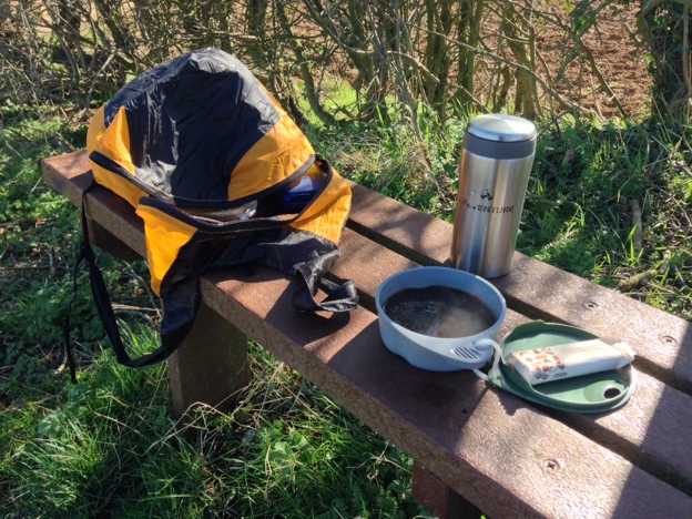 I tried my new Light My Fire Spill-free Cup out today. Rather than take a stove, to save time I opted for hot water in a thermal mug and instant coffee.