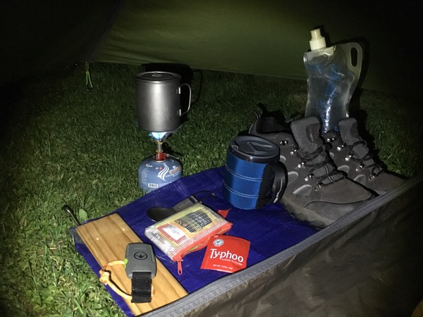 I have changed my tea-towel for a lightweight pack towel, replaced the battered homemade windshield for another homemade windshield and found an even lighter lid to use as a chopping board.